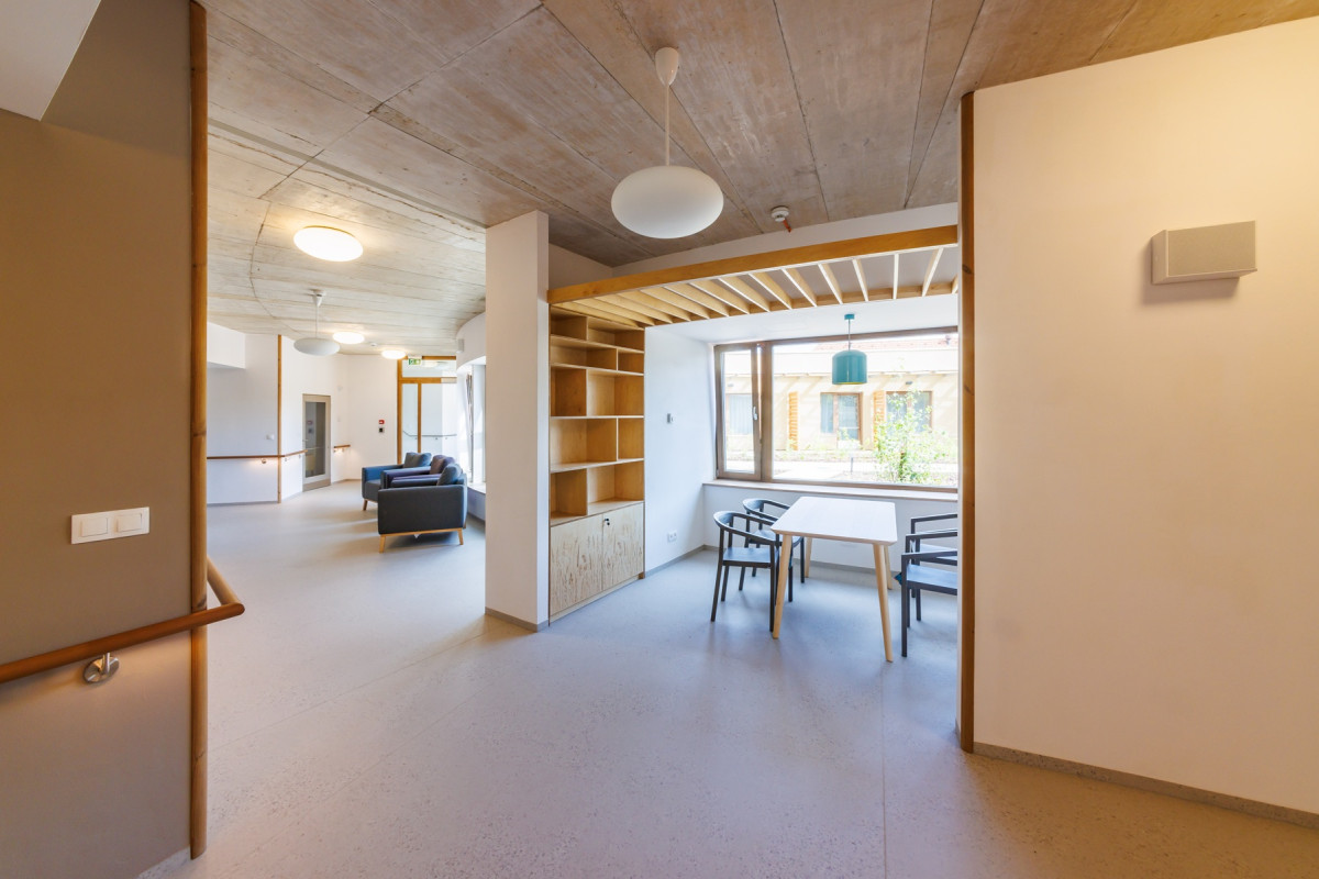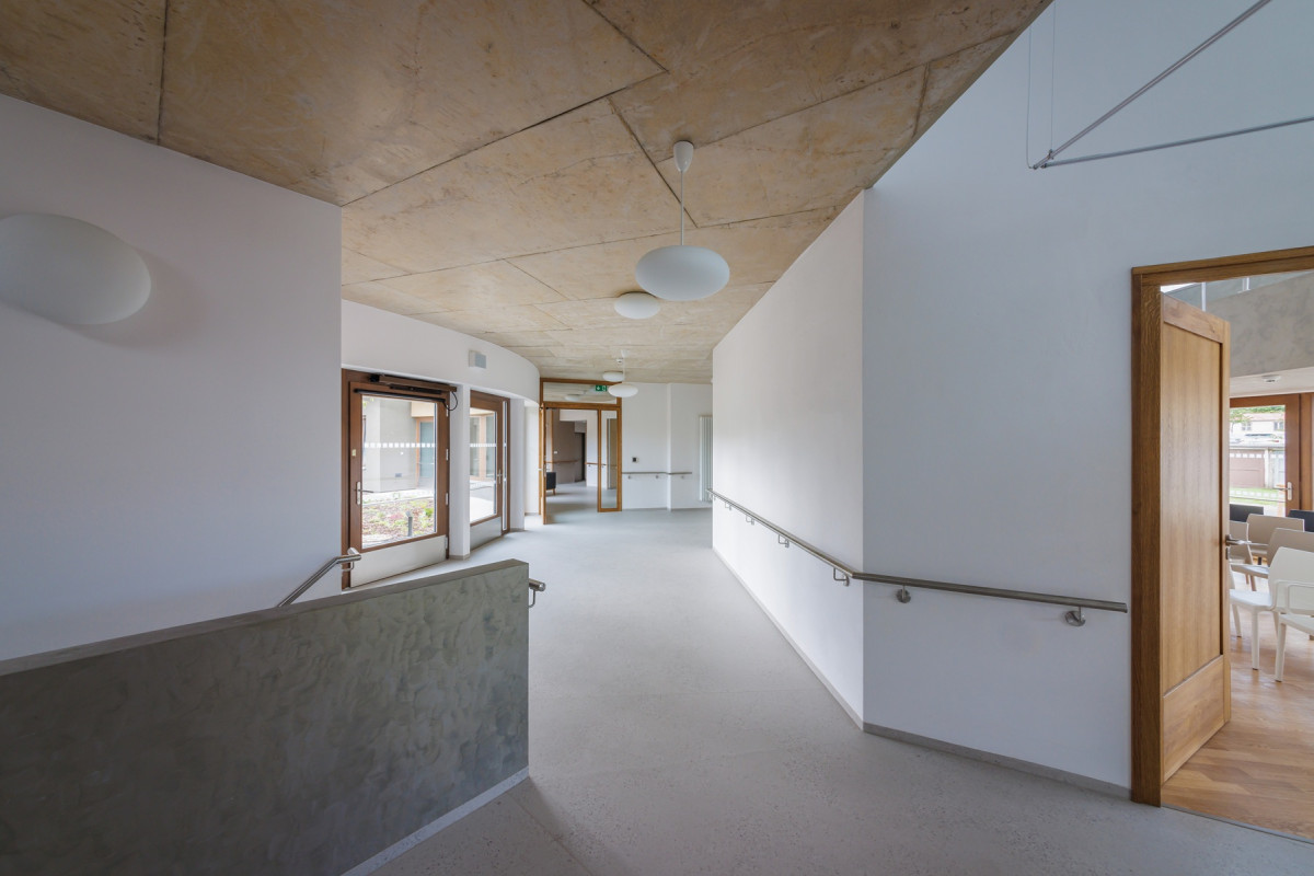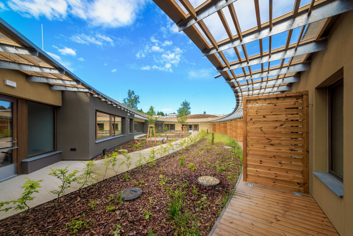 Stavba je zajímavá svým architektonickým pojetím, především pak nestandardním půdorysem, který má podobu nesymetrické elipsy. Domov nazvaný Pomněnka je též unikátní ekologicky šetrným provozem. Recykluje teplo ze vzduchu, energii pro topení a ohřev vody čerpá z hlubin země a střecha je pokrytá zelenou čepicí, která filtruje a zadržuje vodu.