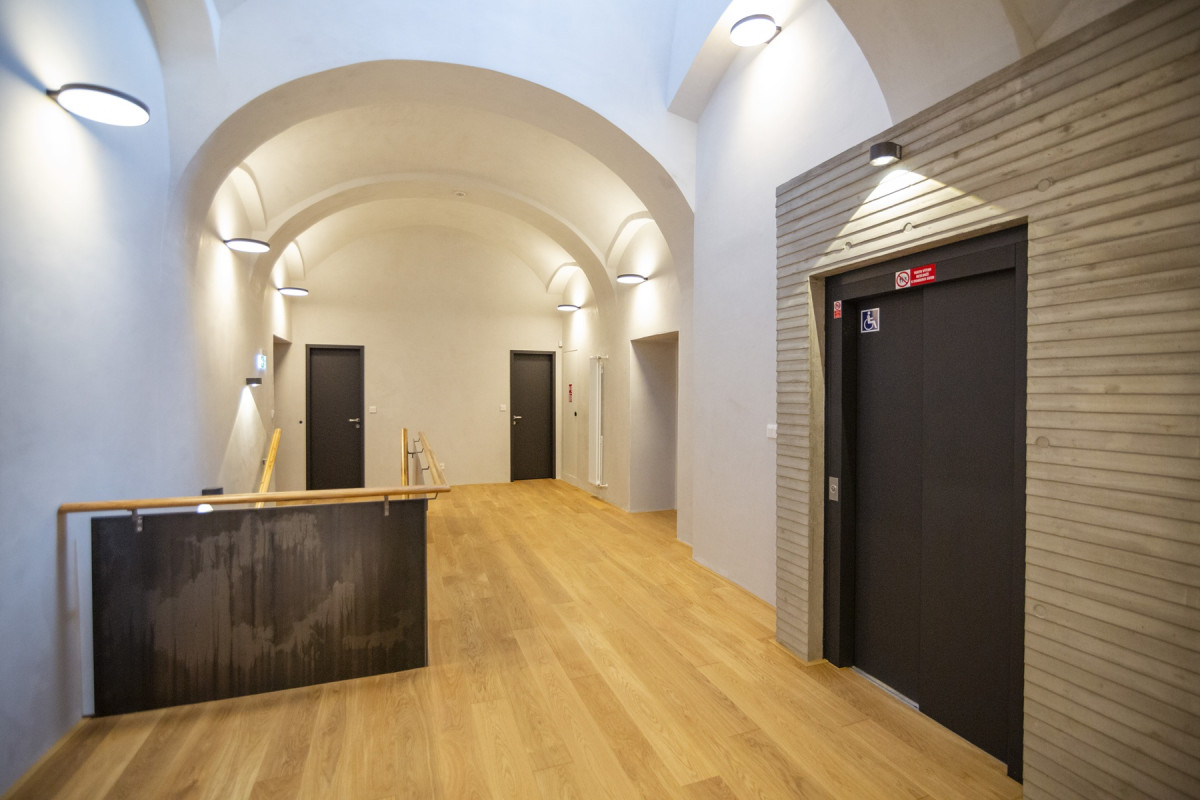 Dokončili jsme 4. etapu rekonstrukce Staré radnice v Havlíčkově Brodě. Rekonstruované prostory budou v přízemí využity jako informační centrum, galerie a expozice historie města, v patře pak pro víceúčelový sál a učebnu. Součástí rekonstrukce bylo i vybudování nového výtahu. Objekt radnice je památkově chráněn a realizace tak byla pod dohledem pracovníků památkové péče.